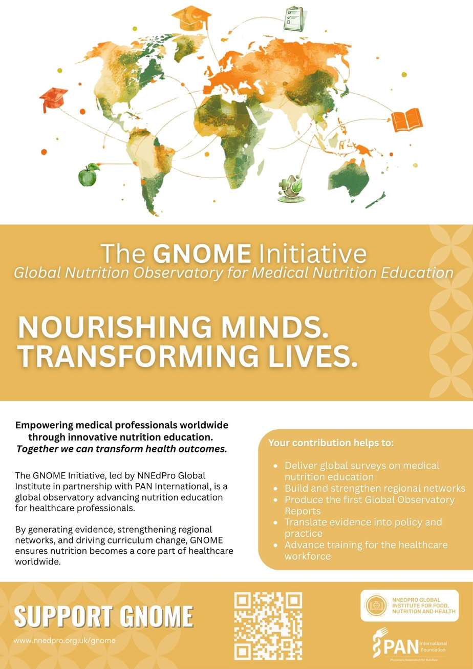 The GNOME Initiative (Global Nutrition Observatory for Medical Nutrition Education) is a growing global hub for evidence generation, knowledge sharing and capacity building in medical nutrition education. Building on the foundations of the NEPHELP project, GNOME serves as an international reference point for understanding how nutrition is integrated into medical and health professional training worldwide.