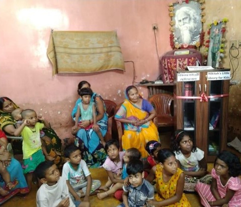 Similarly, on 14th April 2022, Nikitah’s little library was set up in the RG Kar slum at a registered club named “Milan Saathi”. A named ICDS teacher has been given the responsibility of taking care of books and making sure that education reaches every child residing in that/nearby area. This library was inaugurated by local Councilor Dr Meenakshi Ganguly, a renowned Gynecologist in Kolkata.